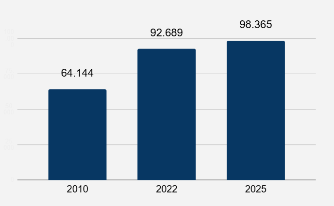 Em 2025 , segundo a estimativa do IBGE, a população teve um aumento de 6,12% em relação à 2022. Isso significa que o município continua crescendo, com mais pessoas vivendo e utilizando os serviços públicos da cidade.