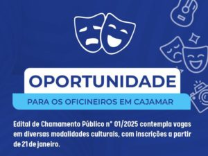 Edital de Chamamento Público nº 01/2025 contempla vagas em diversas modalidades culturais, com inscrições a partir de 21 de janeiro