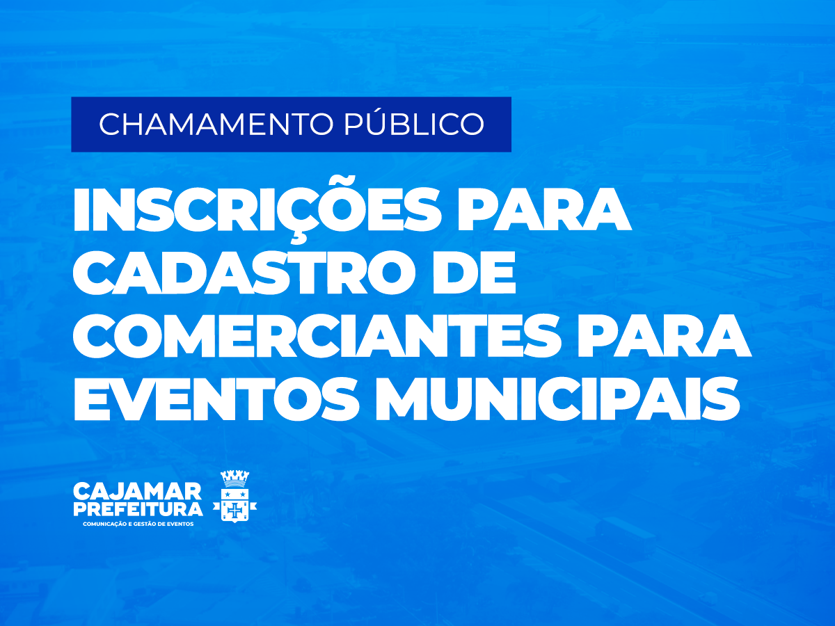 A Prefeitura de Cajamar informa que está aberto o cadastro de comerciantes interessados em participar de eventos municipais realizados ao longo do ano. A iniciativa tem como objetivo organizar e ampliar a participação do comércio local nas ações promovidas pelo município.