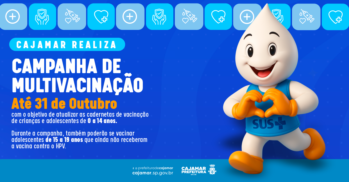 A Prefeitura de Cajamar, por meio da Secretaria Municipal de Saúde, está promovendo a Campanha de Multivacinação com o objetivo de atualizar as cadernetas de vacinação de crianças e adolescentes de 0 a 14 anos, garantindo uma maior cobertura vacinal e prevenindo o retorno de doenças já erradicadas.