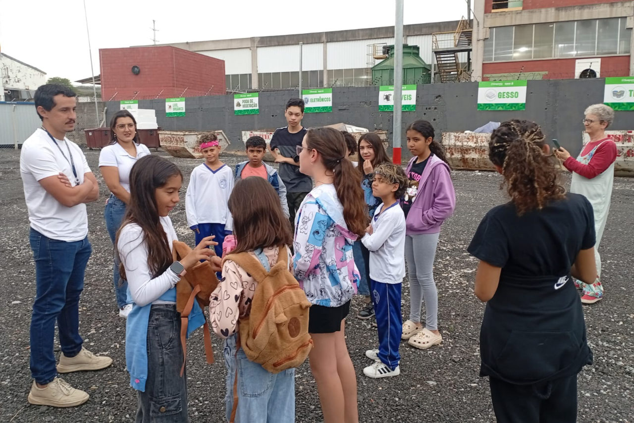 A atividade começou com uma visita ao Ecoponto de Jordanésia, onde os estudantes foram recebidos por uma equipe da Secretaria de Meio Ambiente e aprenderam sobre o descarte correto de resíduos.