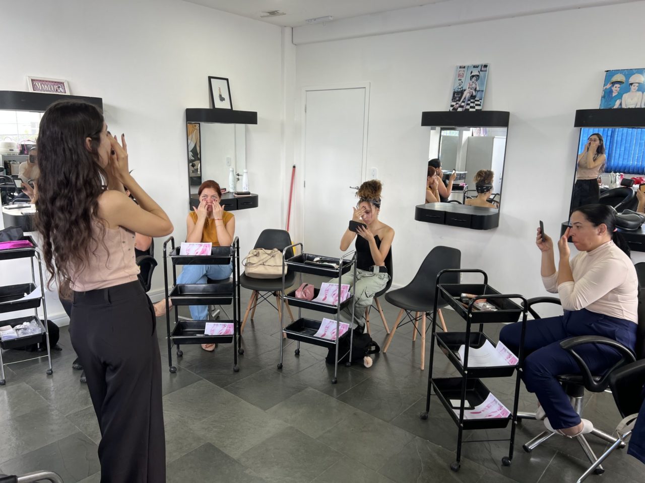 A troca de experiências entre as alunas também foi um ponto alto do curso, criando um ambiente acolhedor para todas. Foi um momento especial para elas dedicarem um tempo para si mesmas e se sentirem valorizadas. O resultado foi um sucesso! Todas se divertiram e saíram se sentindo ainda mais bonitas!