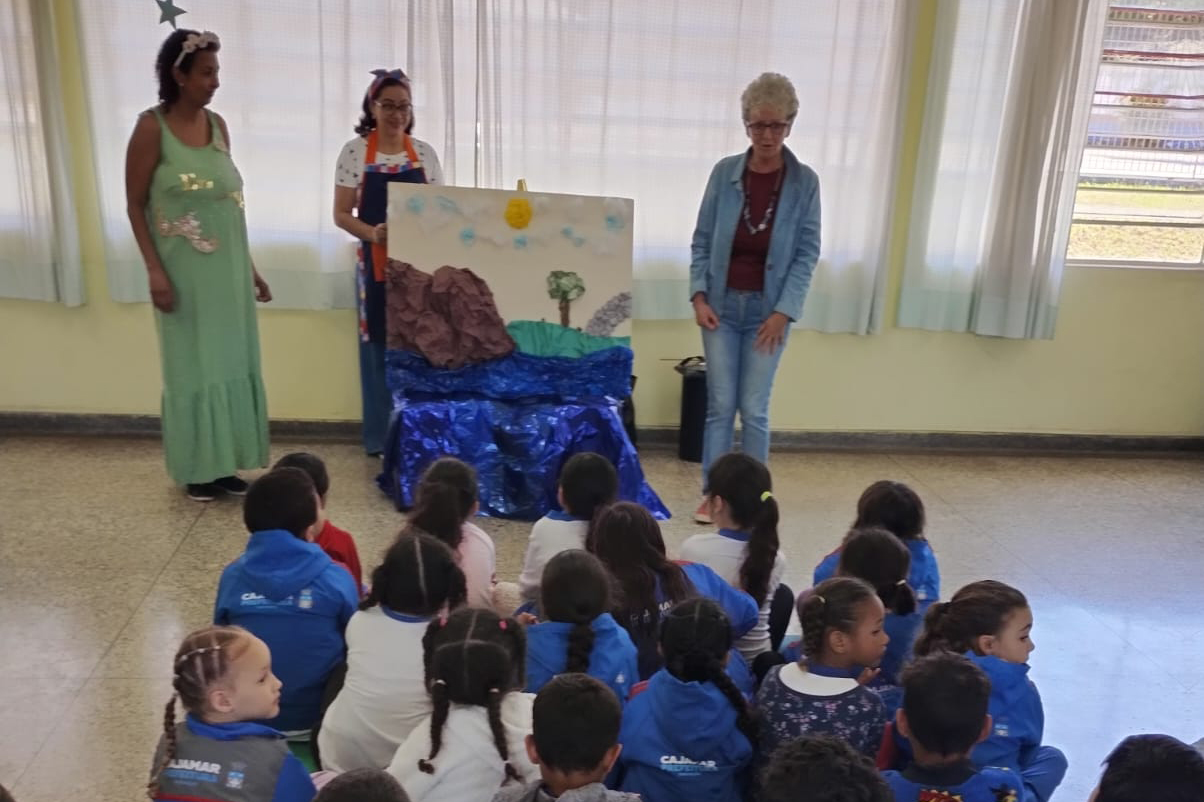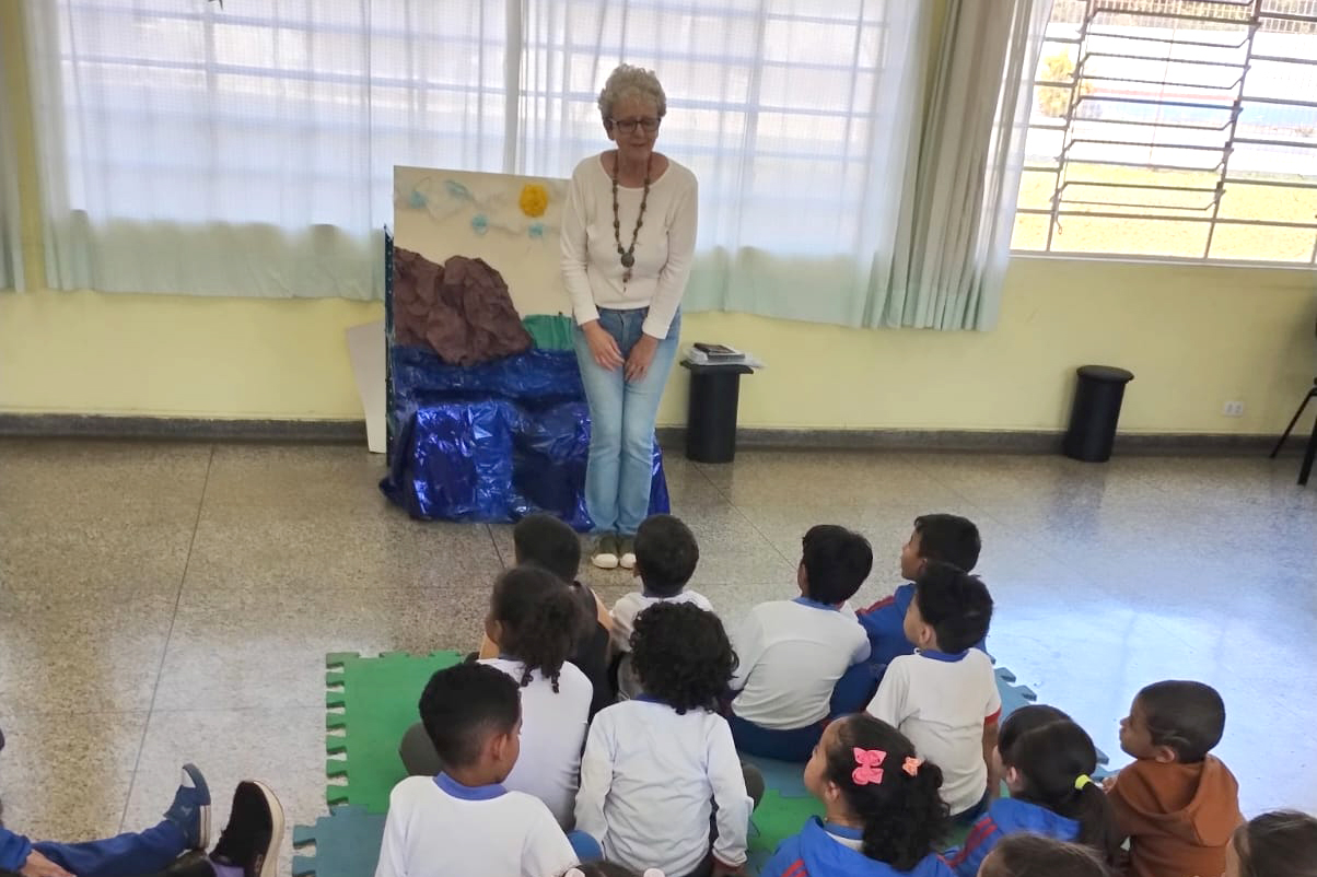 O ponto alto do encontro foi o momento das histórias, contadas pelas alunas da oficina Ester e Janaína, com a participação especial da professora Querubina Ruiz, que encantou o público com sua experiência e sensibilidade na arte de narrar.