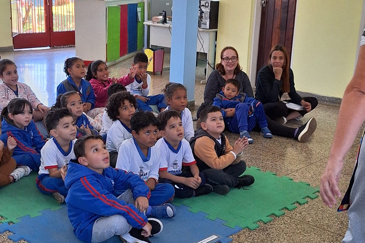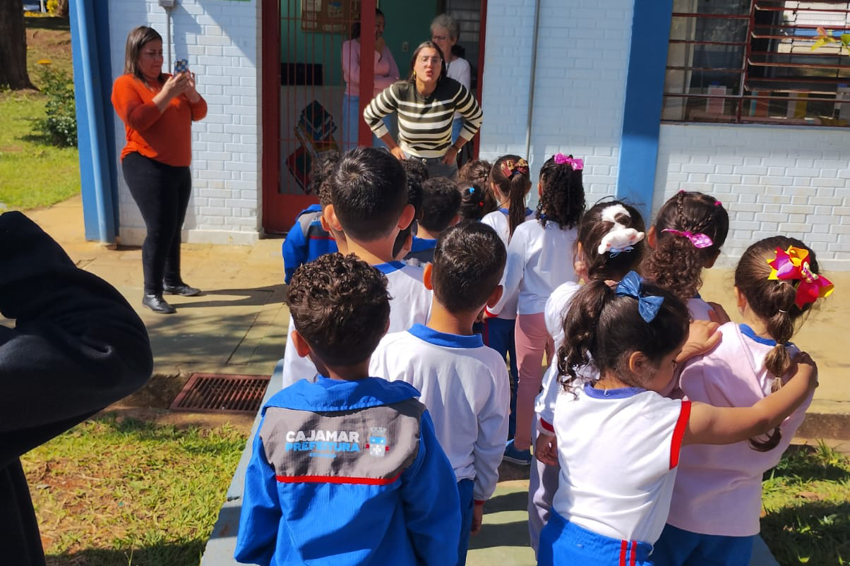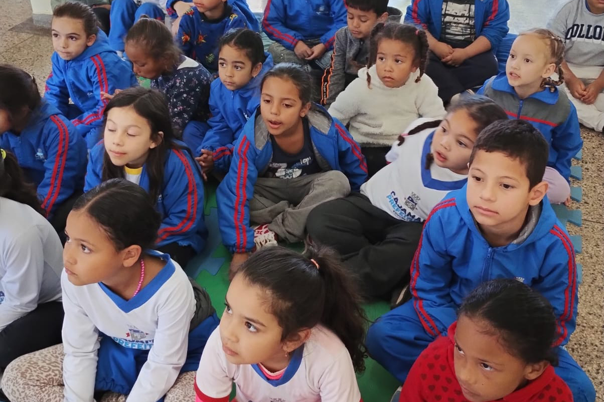 Durante as atividades, os alunos das fases IV e V da Emeb Emerson Cruz Machado participaram de uma programação repleta de aprendizado e diversão. Logo na chegada, as crianças foram recepcionadas com jogos de palavras, que despertaram o interesse pela leitura e pela linguagem de forma lúdica e interativa.