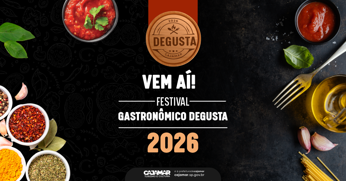 A Secretaria Municipal de Turismo e Cultura tem o prazer de anunciar a terceira edição do Degusta Cajamar, um evento feito para valorizar o talento, a diversidade e o sabor único da nossa gastronomia. Depois do grande sucesso das primeiras edições, o festival retorna com ainda mais novidades, oportunidades e experiências que prometem encantar público e participantes.