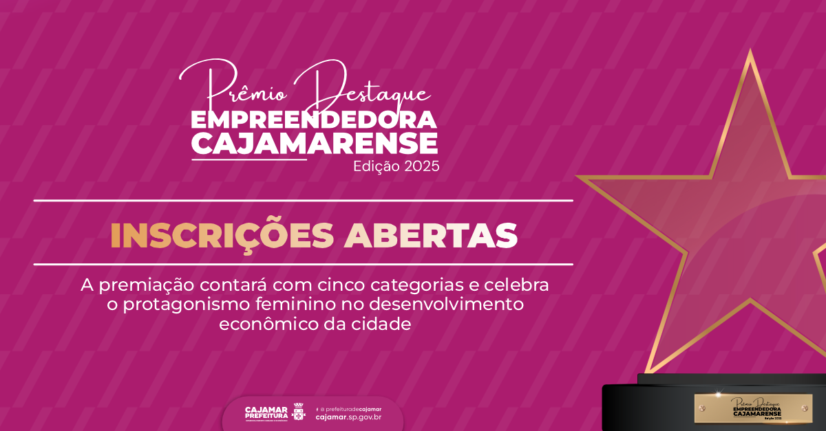 A Prefeitura de Cajamar, por meio da Secretaria Municipal de Desenvolvimento Urbano e Econômico, abre as inscrições para o Prêmio Destaque Mulher Empreendedora – Edição 2025. A iniciativa reconhece mulheres que fortalecem o empreendedorismo local, geram renda, impulsionam inovação e transformam a comunidade por meio de seus negócios.