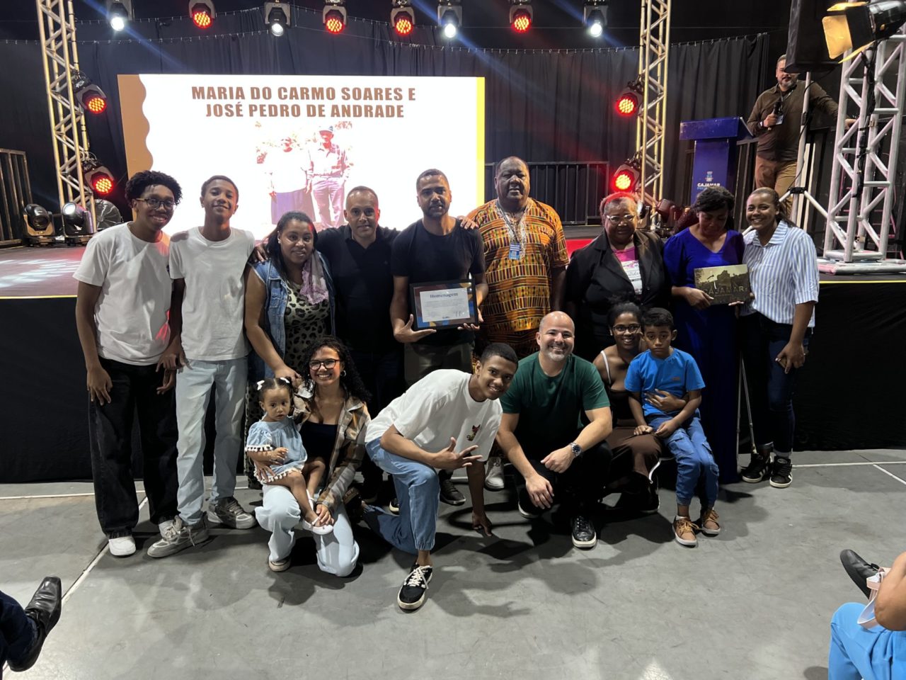 Em um momento especial da programação, diversos munícipes foram homenageados, reconhecidos por suas contribuições e trajetórias que fortalecem a história e a cultura negra em Cajamar.