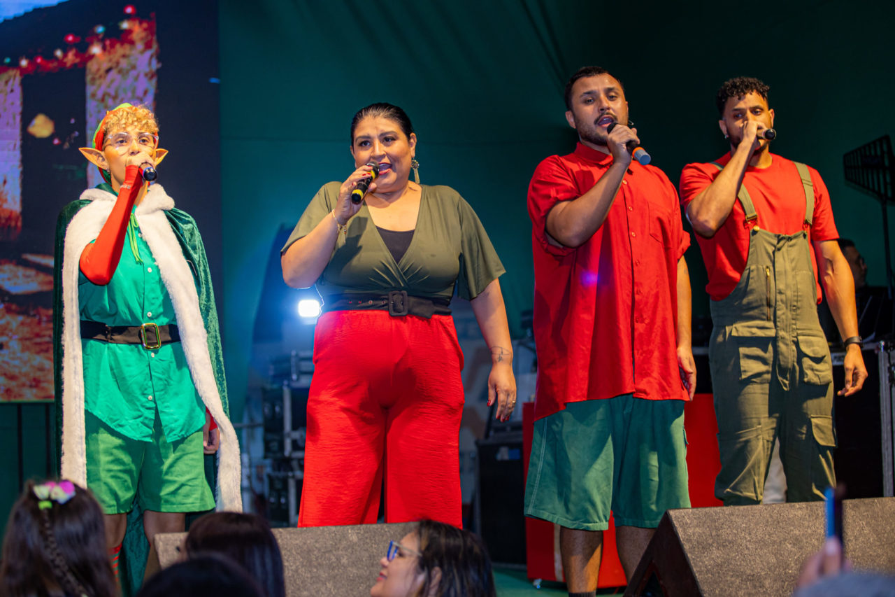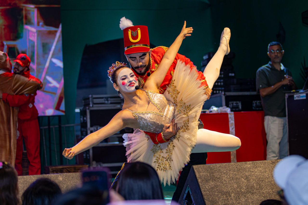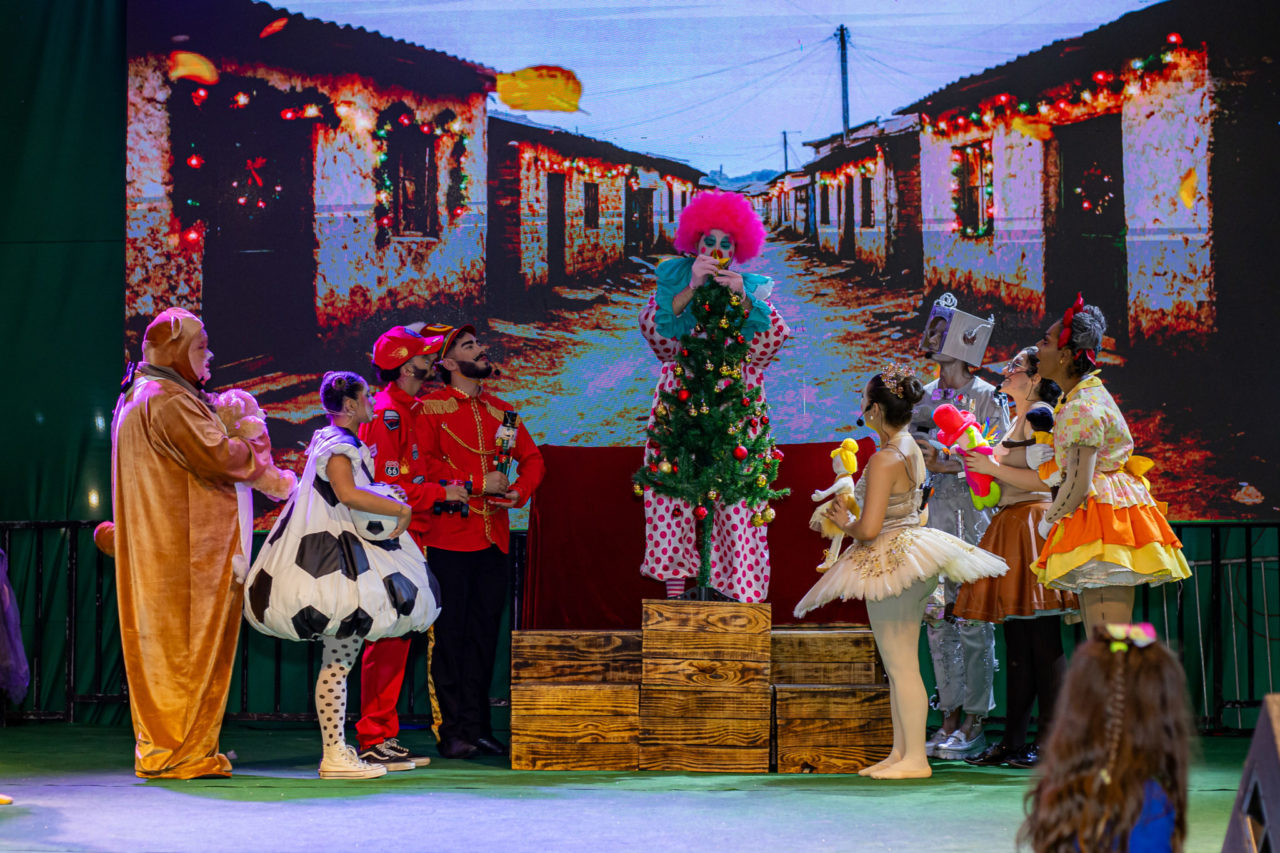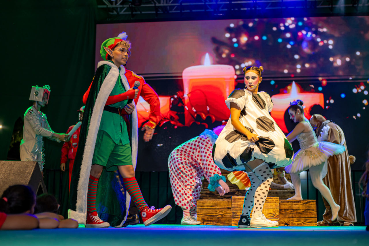 O espetáculo combina teatro, música ao vivo, dança, iluminação cênica e projeções em telão de LED, criando uma atmosfera encantadora. Figurinos coloridos, coreografias e efeitos visuais completam a experiência, que mais uma vez contou com a participação de artistas da cidade.