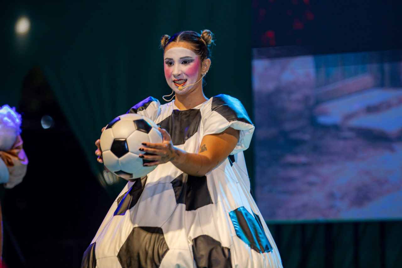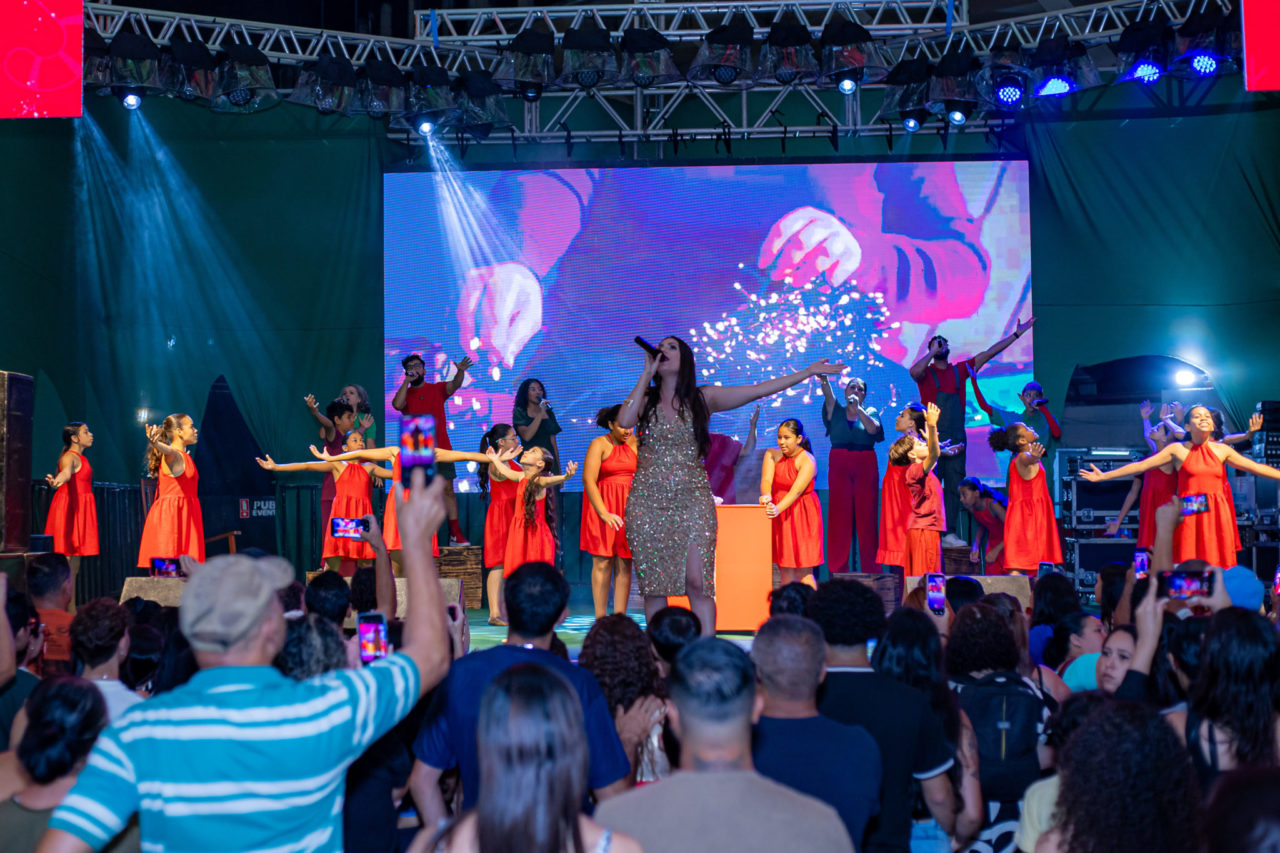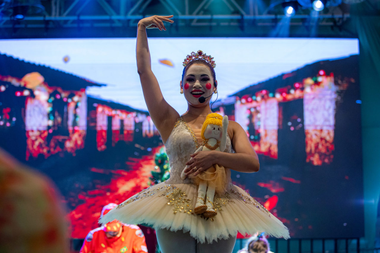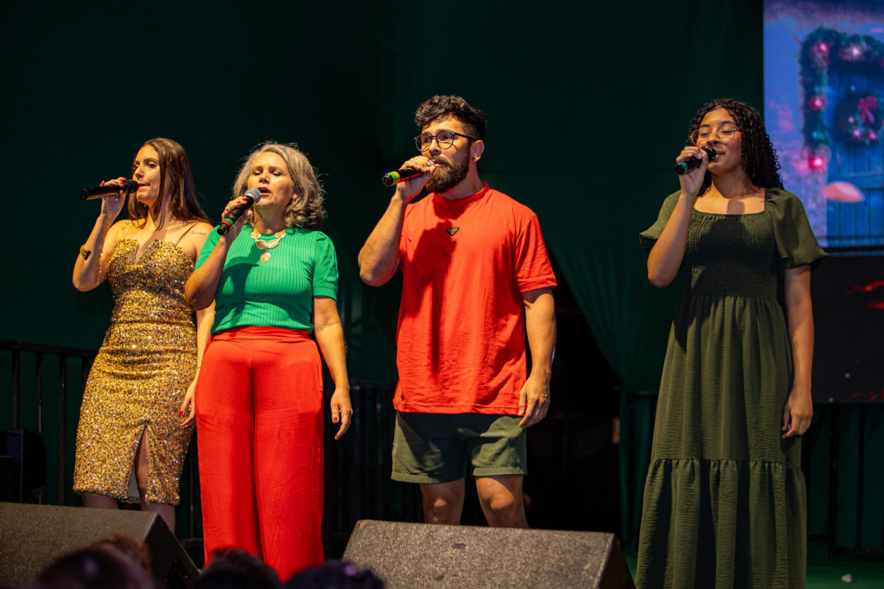 O espetáculo combina teatro, música ao vivo, dança, iluminação cênica e projeções em telão de LED, criando uma atmosfera encantadora. Figurinos coloridos, coreografias e efeitos visuais completam a experiência, que mais uma vez contou com a participação de artistas da cidade.