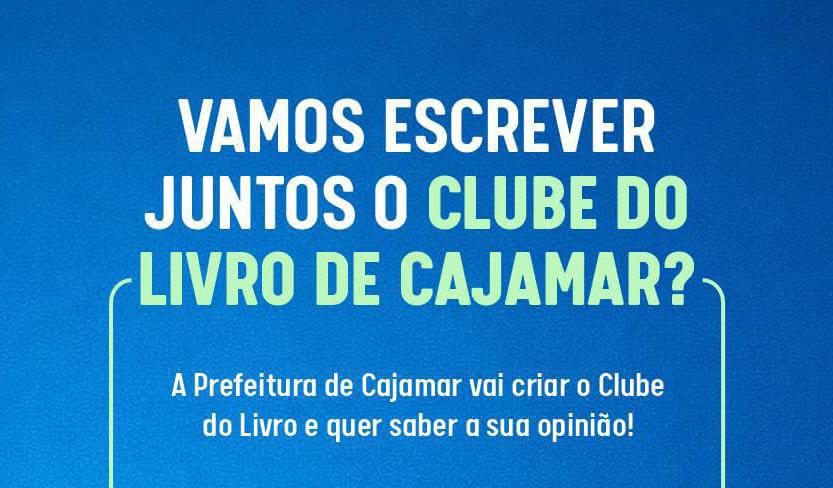 A Prefeitura de Cajamar, por meio da Secretaria de Turismo e Cultura, disponibilizará a partir do dia 21 de janeiro, uma pesquisa de interesse da população sobre o projeto Clube do Livro, iniciativa voltada ao incentivo à leitura, à formação de leitores e ao fortalecimento das ações culturais no município.