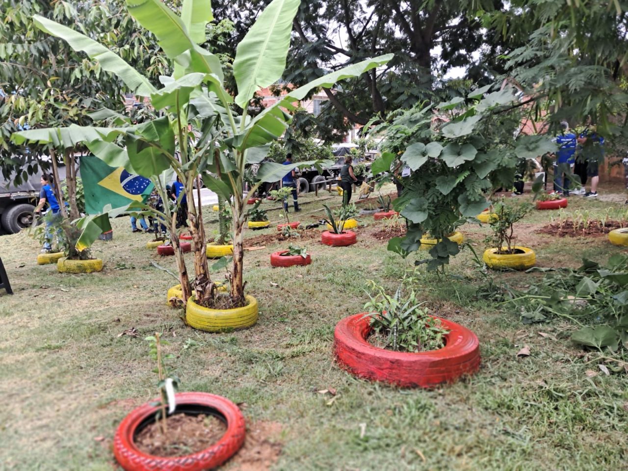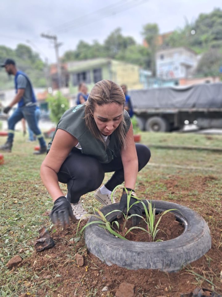 Durante a ação, foi realizada uma força-tarefa que envolveu a coleta de resíduos, a pintura de estruturas do espaço público e o plantio de 150 mudas de plantas e flores, contribuindo diretamente para a recuperação e conservação da área verde da praça.