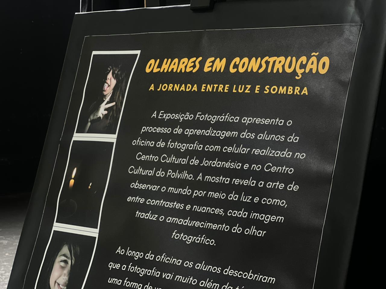 A mostra reúne fotografias produzidas pelos alunos da oficina de Fotografia das Oficinas Culturais de Cajamar, apresentando ao público registros que traduzem o processo de aprendizado, experimentação e descoberta vivenciado pelos participantes ao longo das aulas.