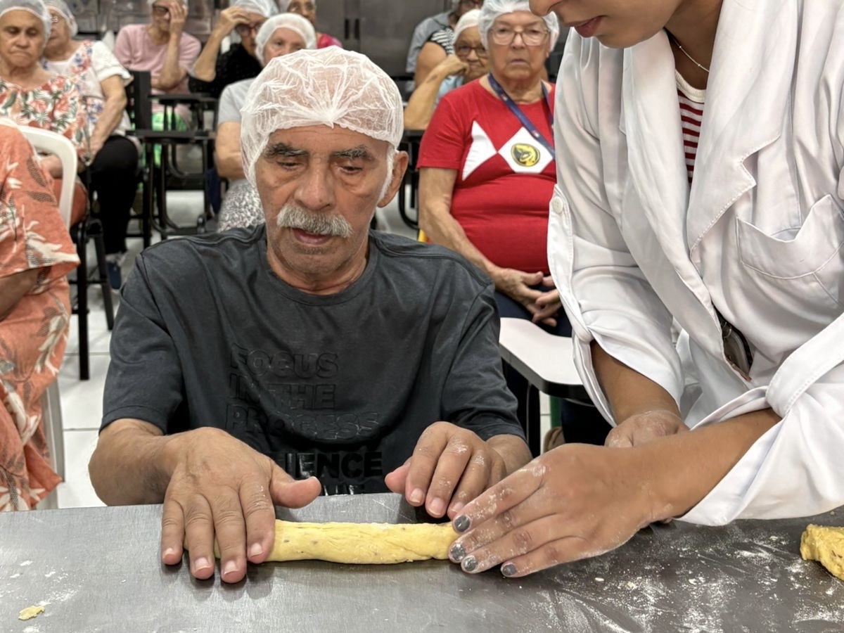 A iniciativa proporcionou aos participantes um momento especial de aprendizado e integração, incentivando o desenvolvimento de novas habilidades culinárias de forma leve e acolhedora. Durante a oficina, os idosos puderam acompanhar o preparo das receitas e também colocar a mão na massa, vivenciando cada etapa do processo.