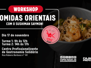 Atividade será realizada no Centro de Gastronomia Solidária e contará com duas turmas no dia 17 de novembro -